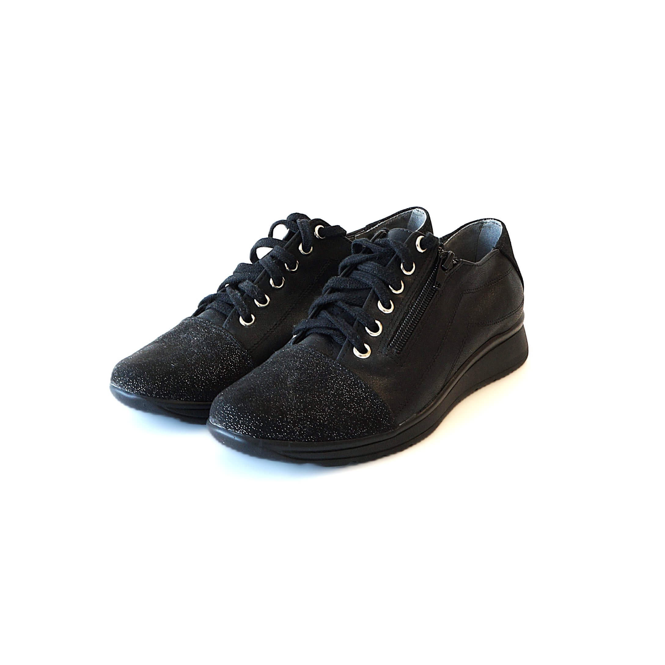 Ieškote batelių, kurie tiktų tiek ilgam pasivaikščiojimui parke, tiek kasdieniams reikalams mieste? STAŠKO 20/25-5 modelis sujungia sportinį patogumą ir moteriškas detales. Juoda eko oda čia papildyta blizgiu faktūriniu paviršiumi batų priekyje, suteikiant modeliui modernumo ir išskirtinumo.