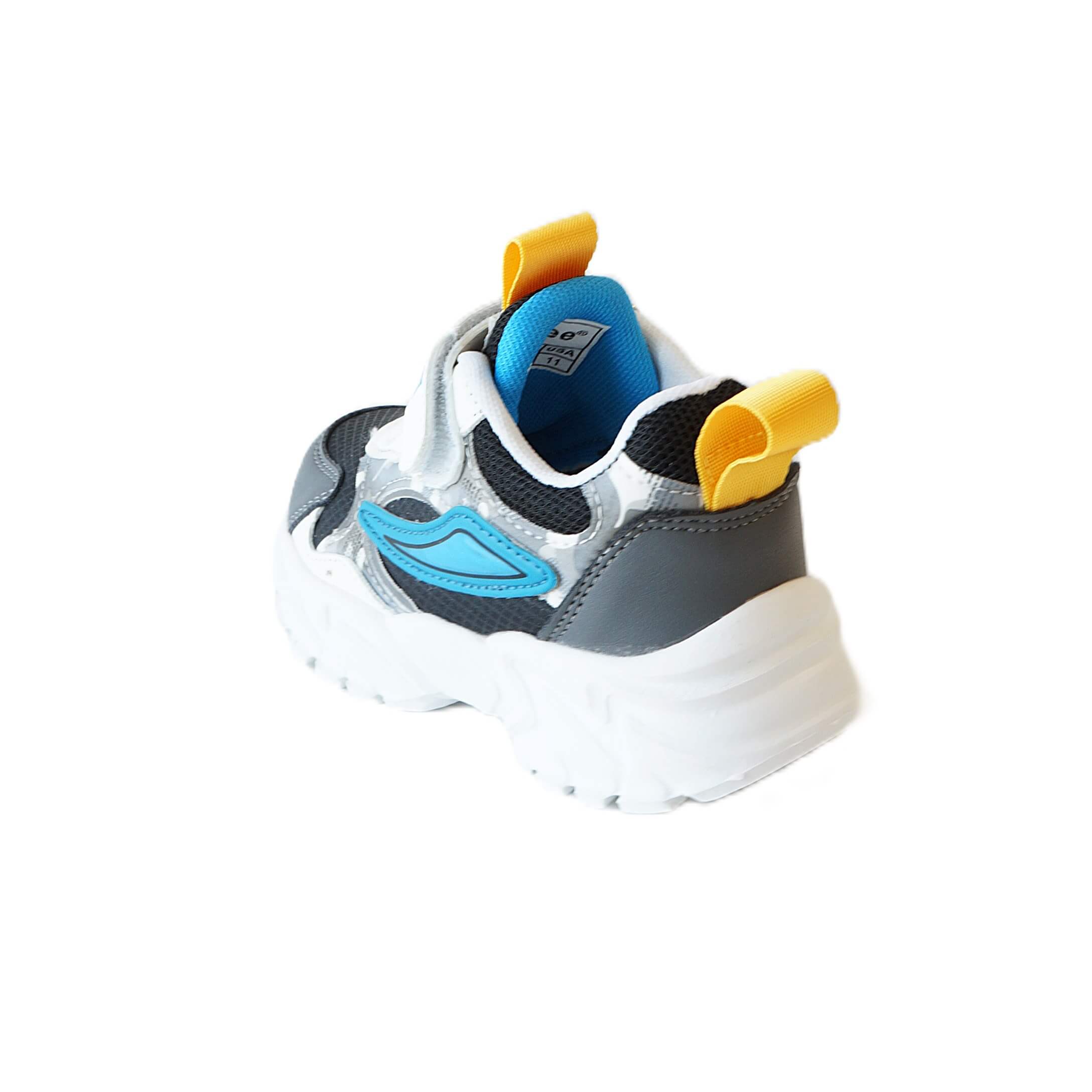 Clibee E-111 modelis sukurtas tiems vaikams, kurie negali nusėdėti vietoje. Ryškūs geltoni akcentai pilkame fone sukuria dinamišką įvaizdį, o apgalvota batų konstrukcija saugo pėdas net ir intensyviausio judėjimo metu. Tai batai, kurie nebijo aktyvių žaidimų aikštelės iššūkių.